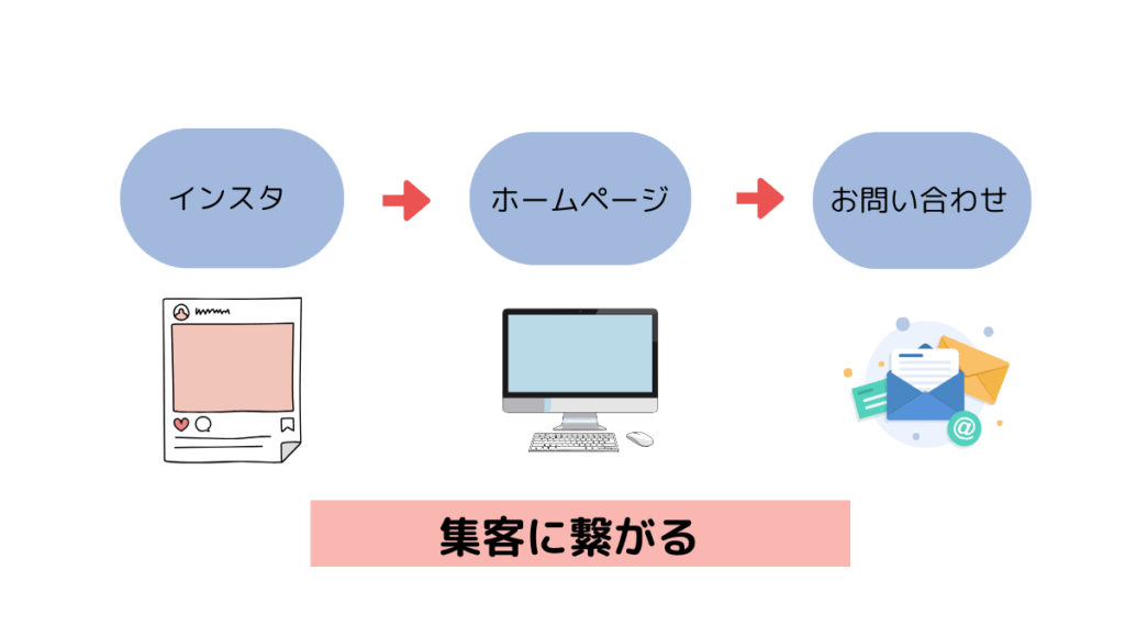 この流れが整っていないと、どれだけインスタを頑張っても集客にはつながりません。